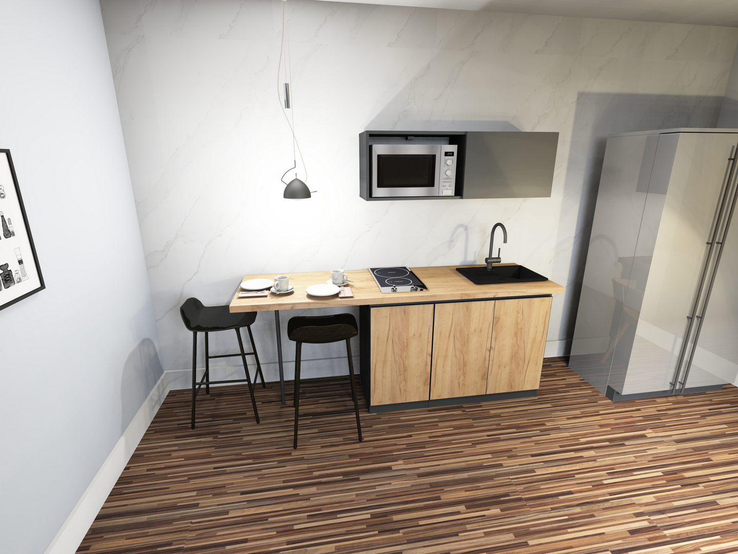 Complete kitchen, 120 cm wide, with 200 cm countertop.